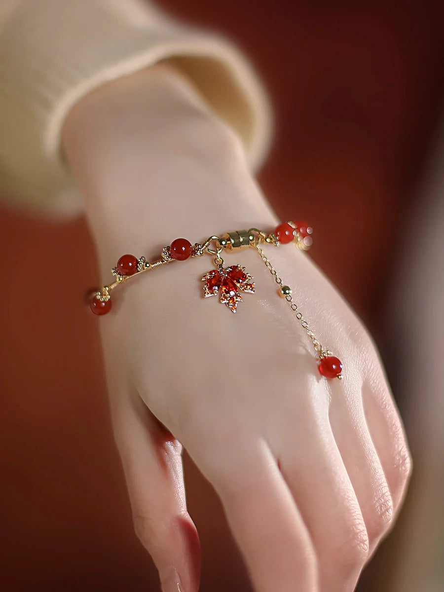 Autumn Maple Leaf Ancient Red Agate Bracelet