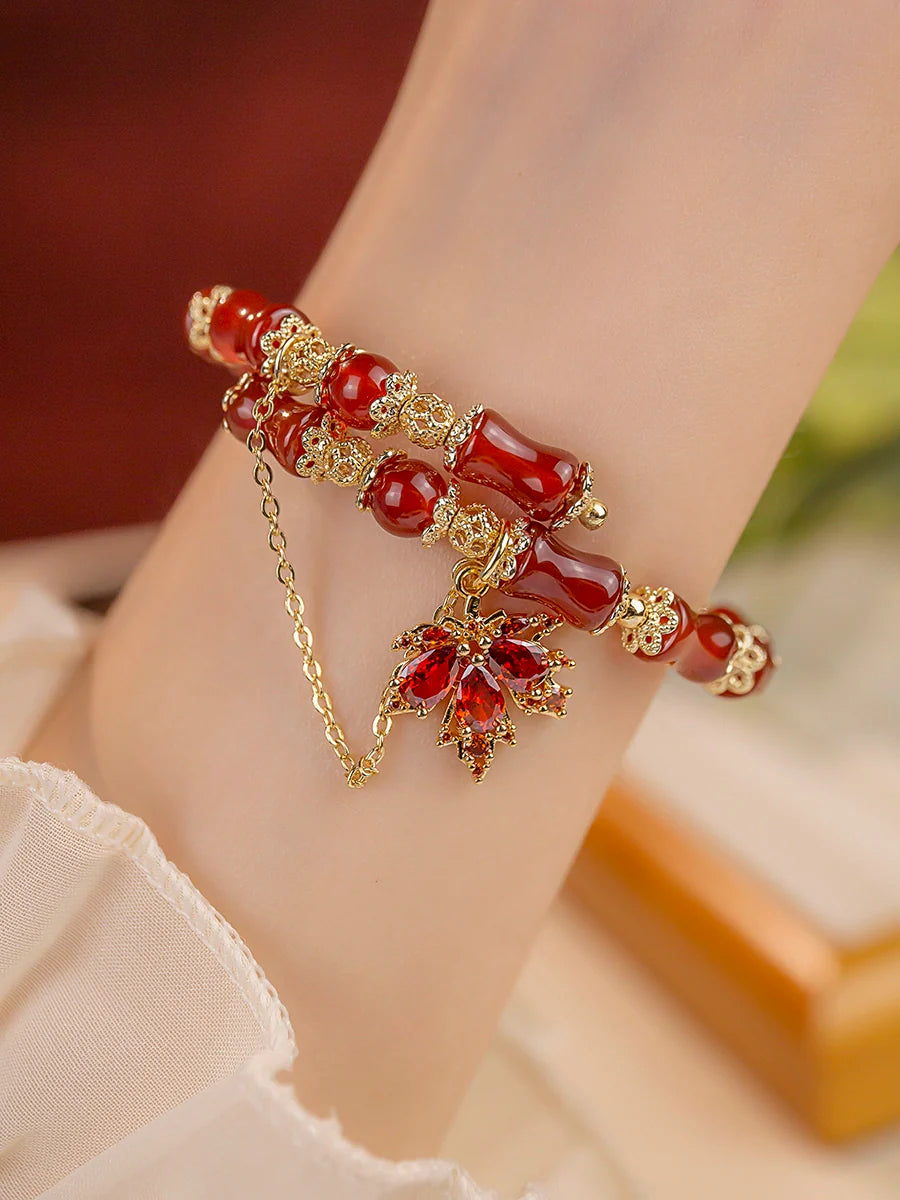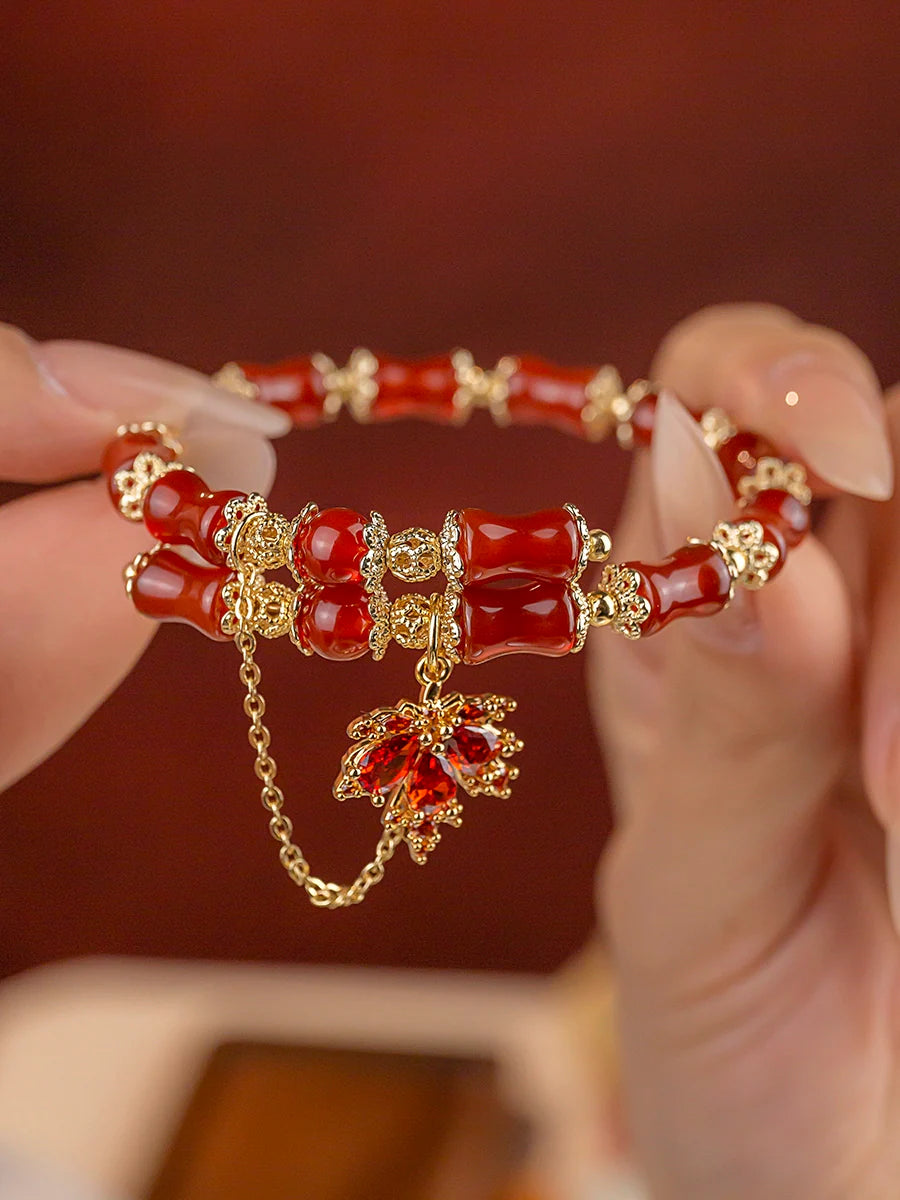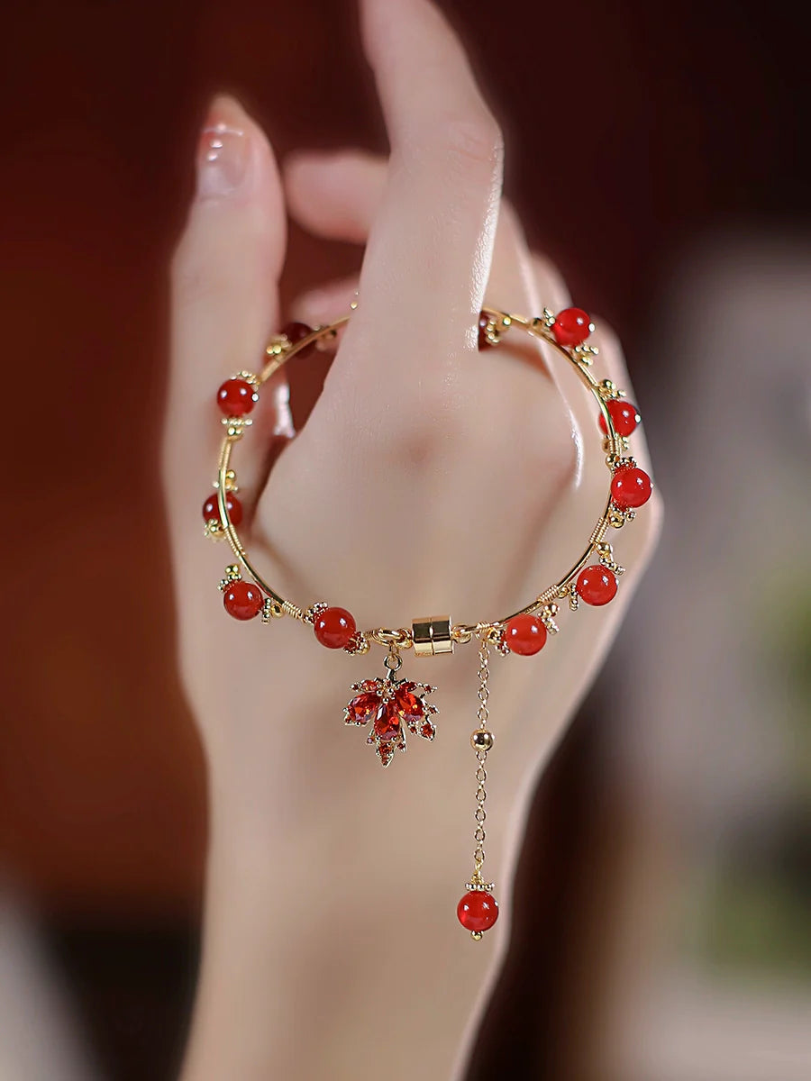 Natural South Red Agate Maple Leaf Bracelet