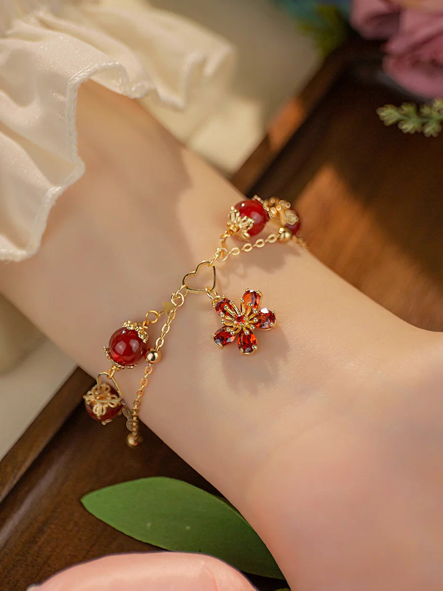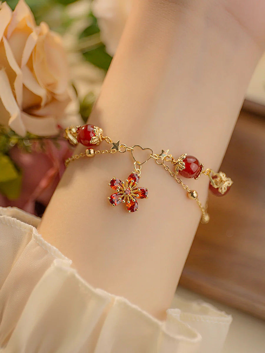 Five-Petal Flower Red Agate Bracelet