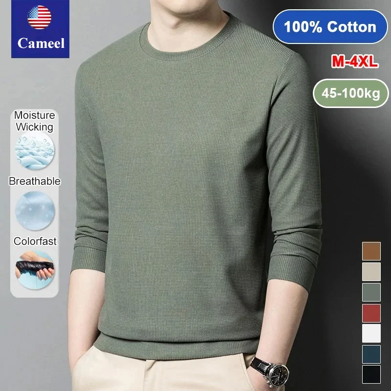 Men's Waffle Long Sleeve Casual Knitted Tops For Men
