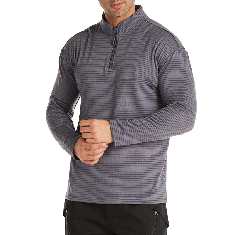 Men's Warm Striped Zipper Stand-Up Knit Shirt