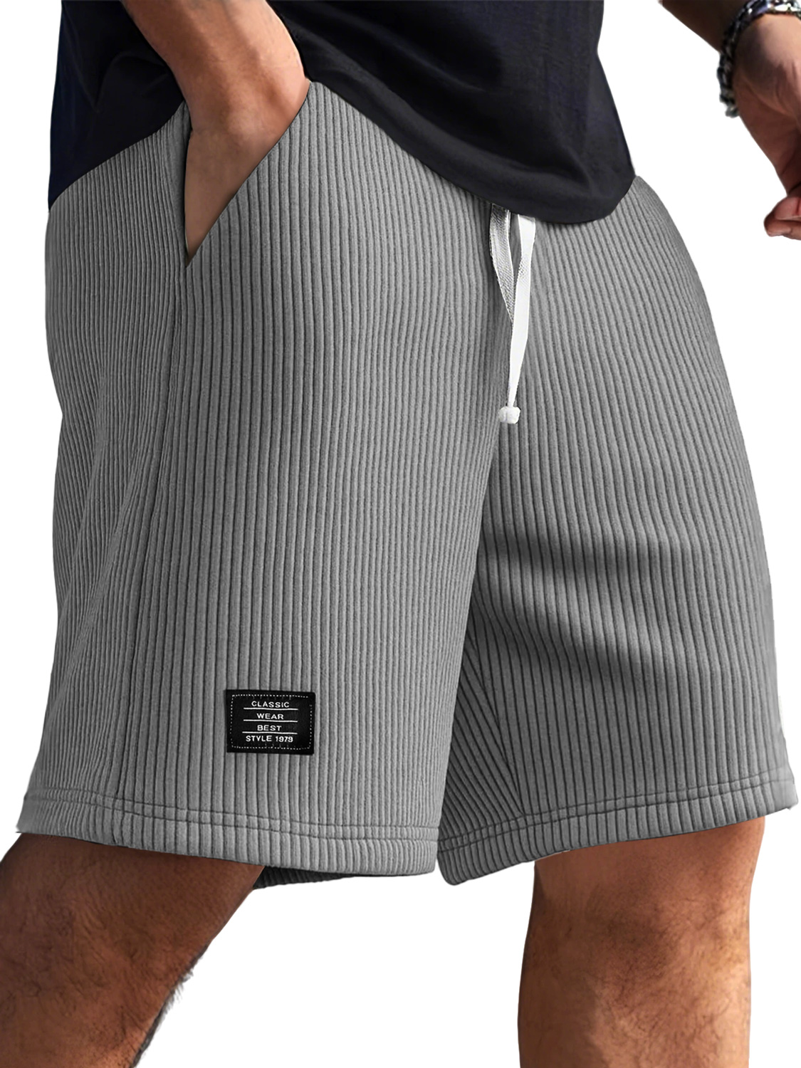 Men's Fashion Casual Outdoor Ribbed Fabric Logo Embroidered Shorts