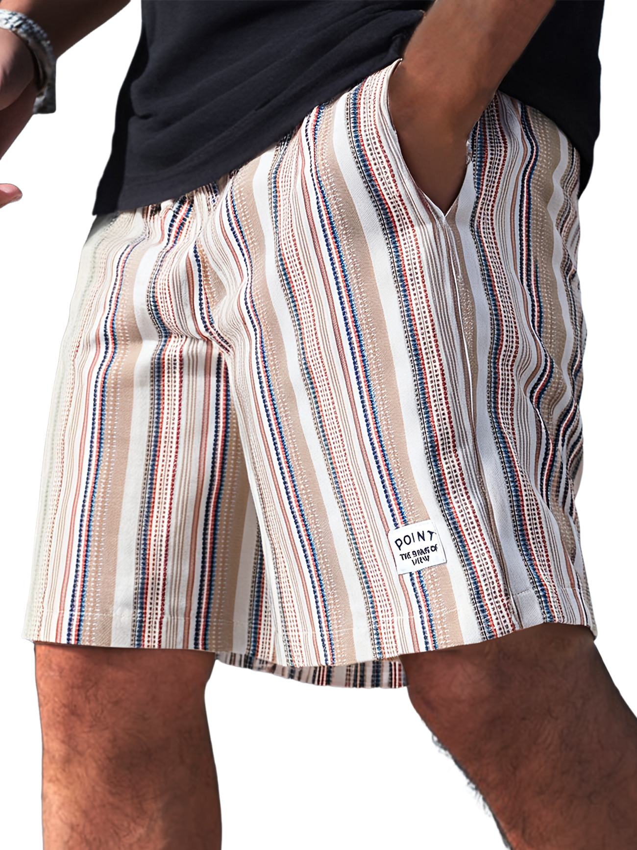 Men's Daily Striped Texture Embroidered Logo Casual Comfort Shorts