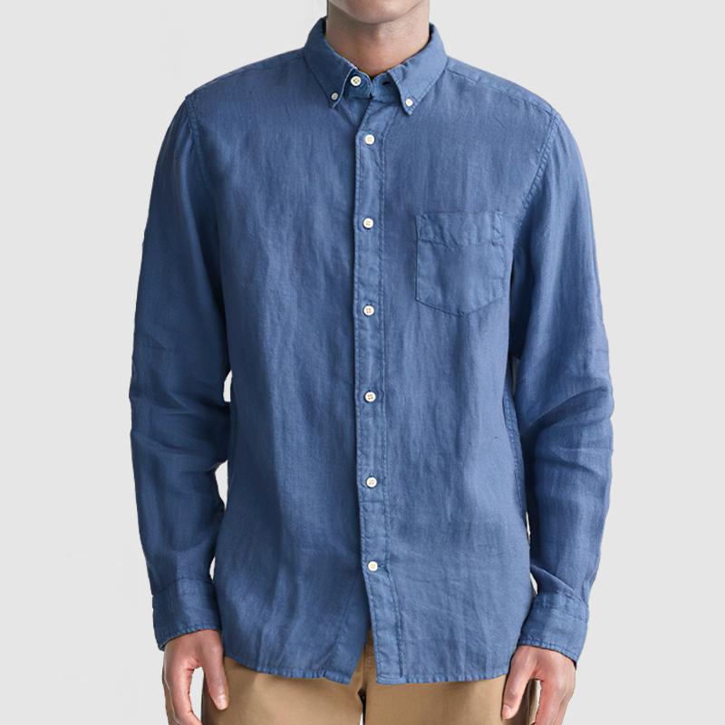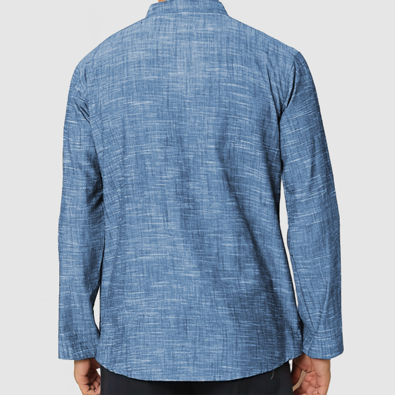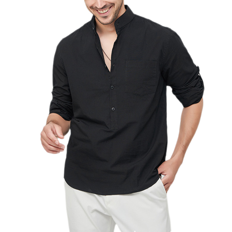 Men's Basic Casual Cotton Linen Pocket Shirt