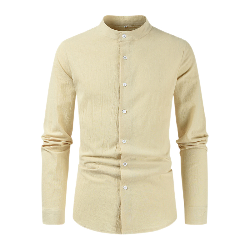 Men's summer lapel solid color cotton and linen cardigan casual short-sleeved shirt