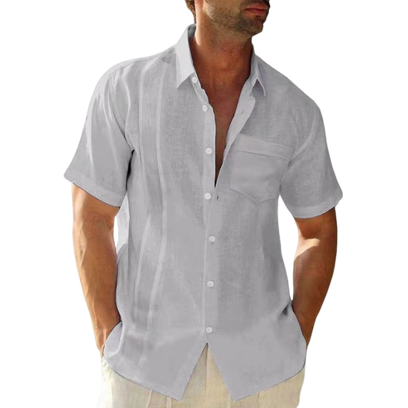 Mens Cotton Linen Casual Cuban Short Sleeve Beach Shirt