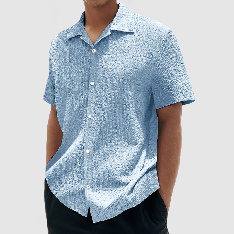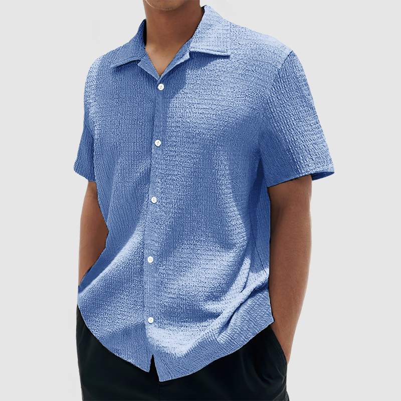Men's Everyday Casual Cotton Textured Short Sleeve Shirt