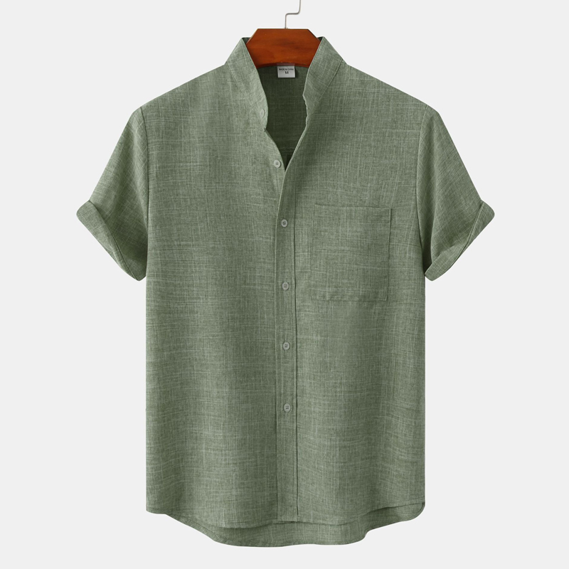 Men's Beach Cotton Linen Standing Collar Shirt