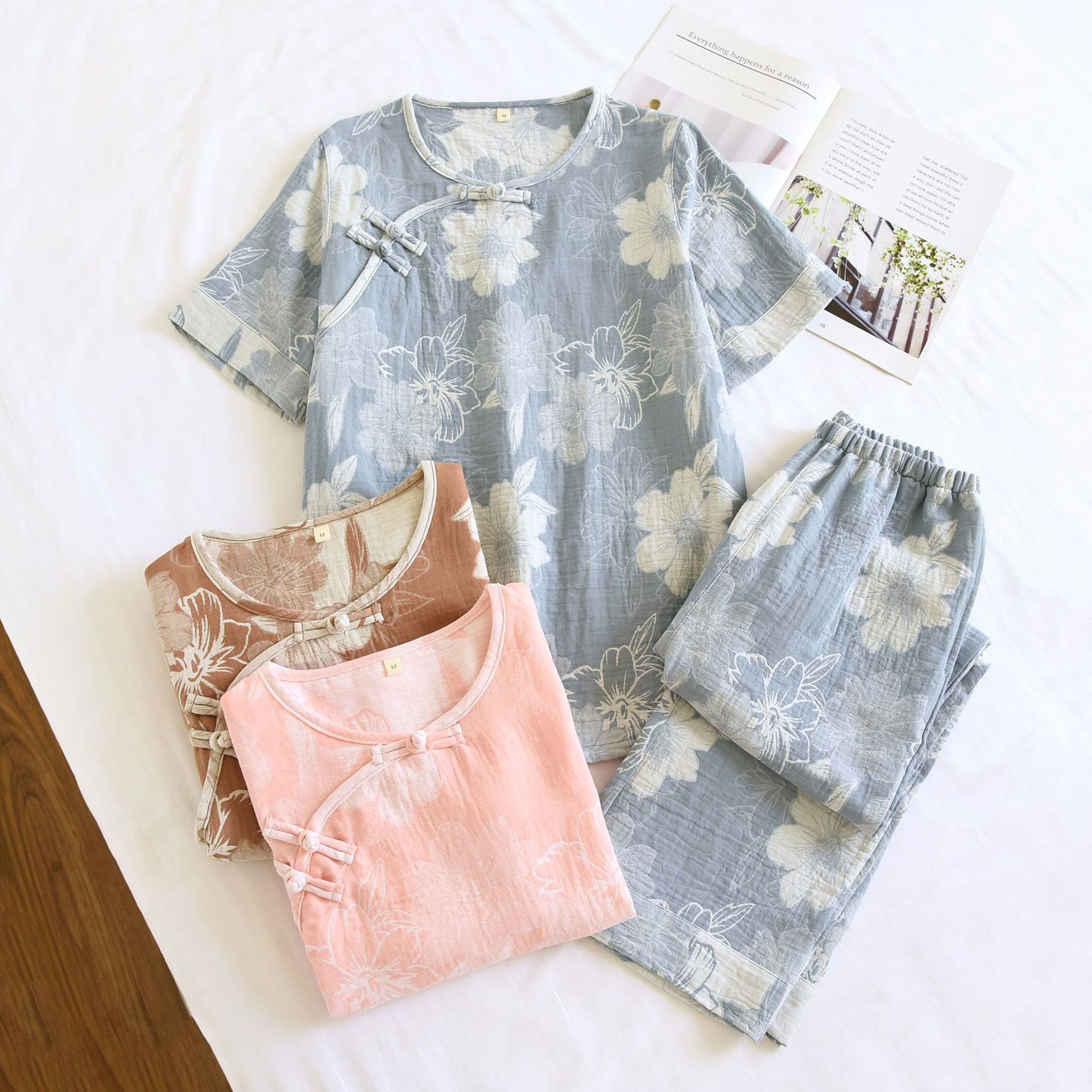 Retro Jacquard Cotton Gauze Summer Pajama Set