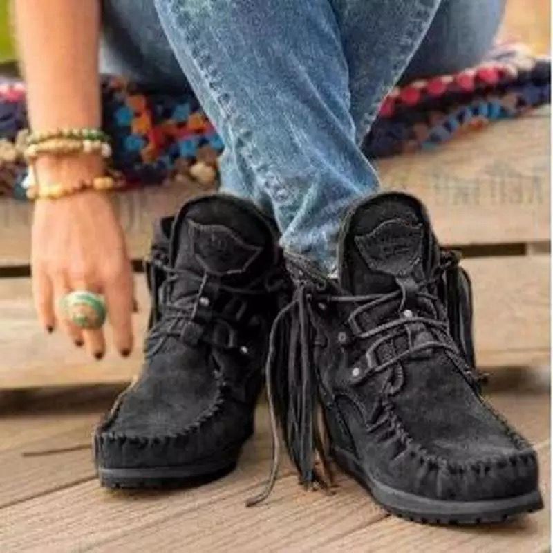 Last Day 50% OFF-Womens Tassel Trim Warm Fur Lined Comfortable Ankle Boots