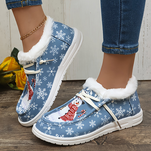 LAST DAY 50% OFF-Women's Comfort Plush Snowman Canvas Ankle Boots