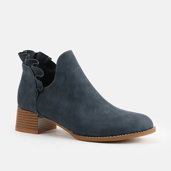 LAST DAY 75% OFF-Womens Ruffle Cut Out Chunky Low Heel Ankle Boots