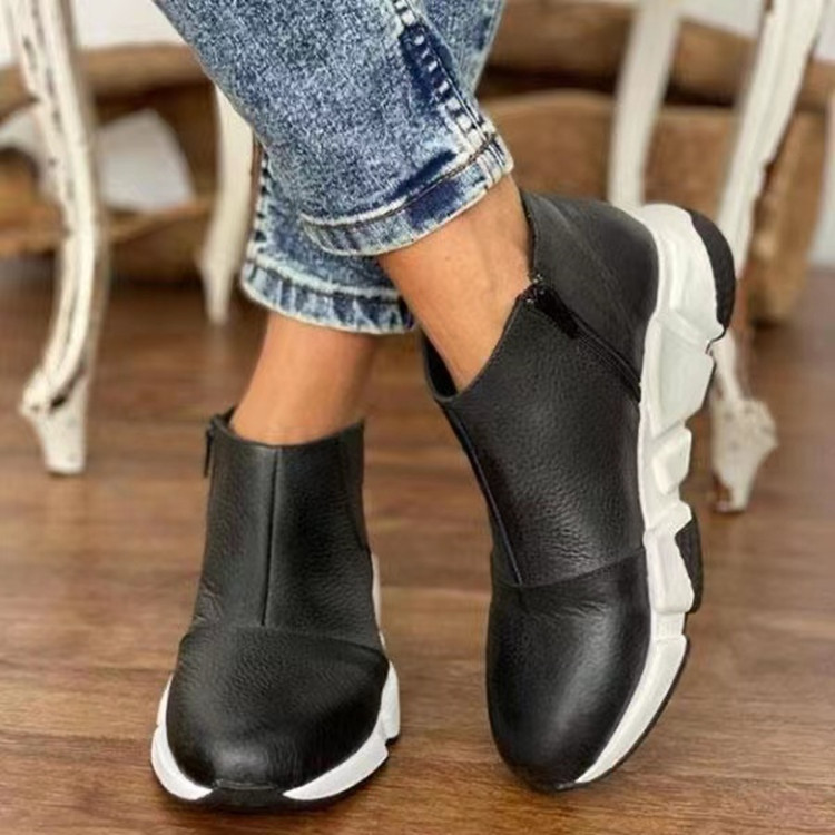 Women's Comfy Non Slip Leather Zip Up Ankle Boots