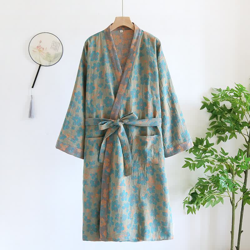 Breathable Pure Cotton Jacquard Floral Bathrobe