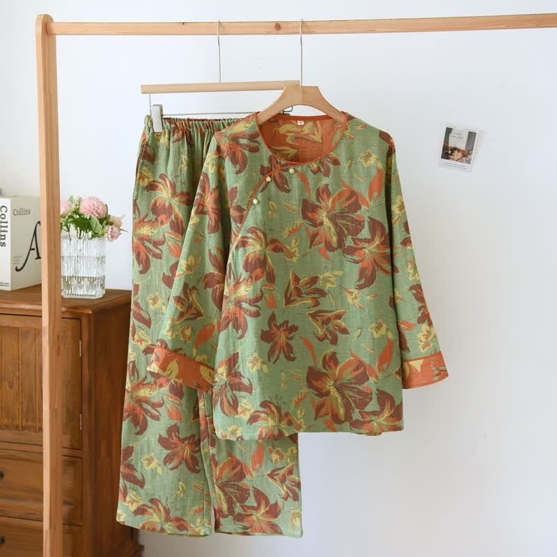 Cotton Gauze Jacquard Rhododendron Pajama Set