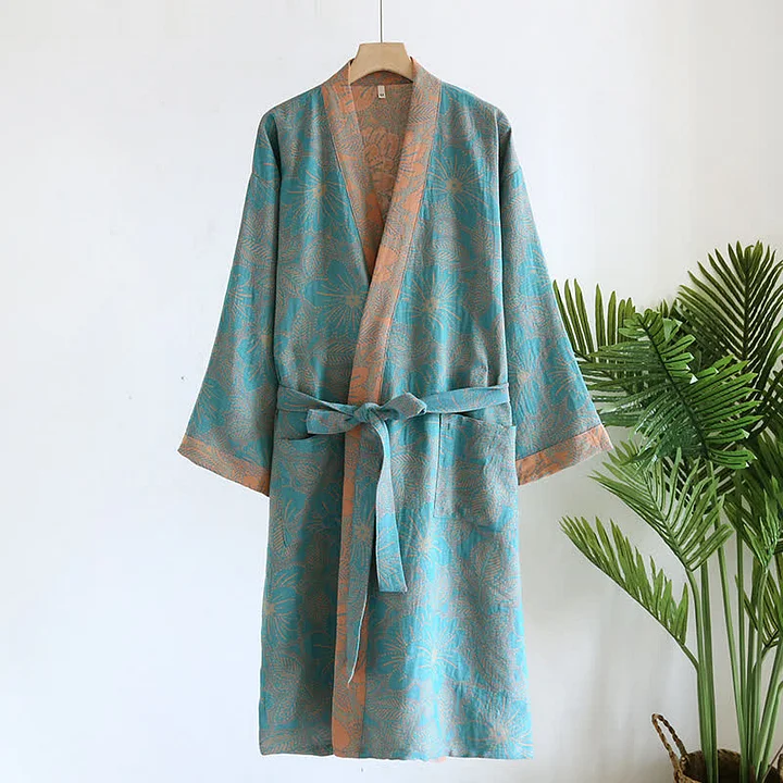 Cotton Gauze Jacquard Vintage Floral Bathrobe