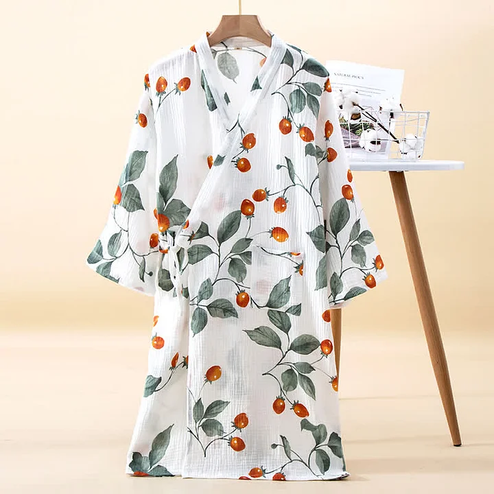 Cotton Gauze Rural Cherry Tomato Bathrobe