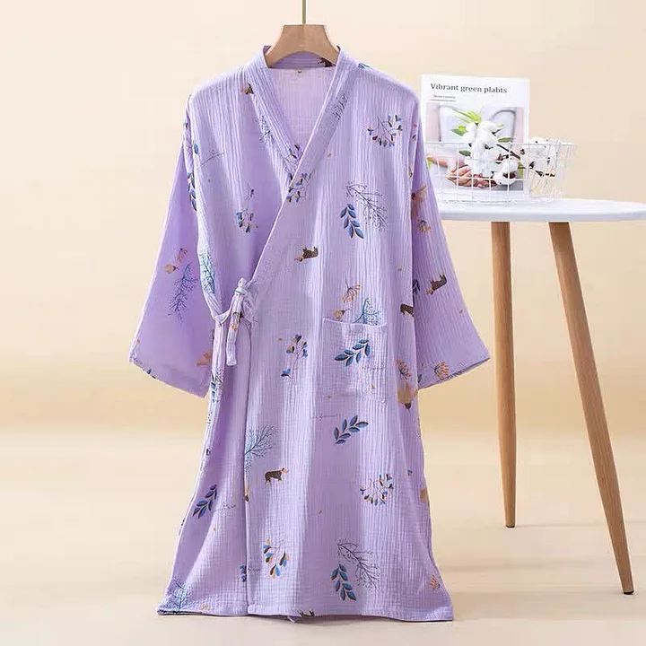 Cotton Gauze Rural V-neck Kimono Bathrobe
