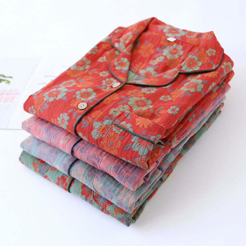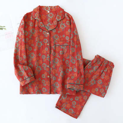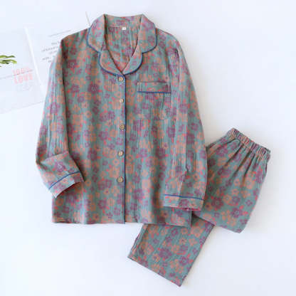 Double Layer Gauze Yarn-dyed Cotton Nightwear Set