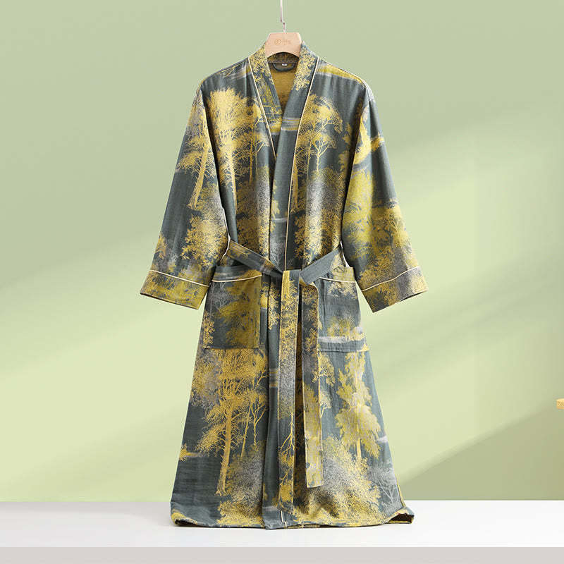 Double Layered Cotton Gauze Neutral Bathrobe
