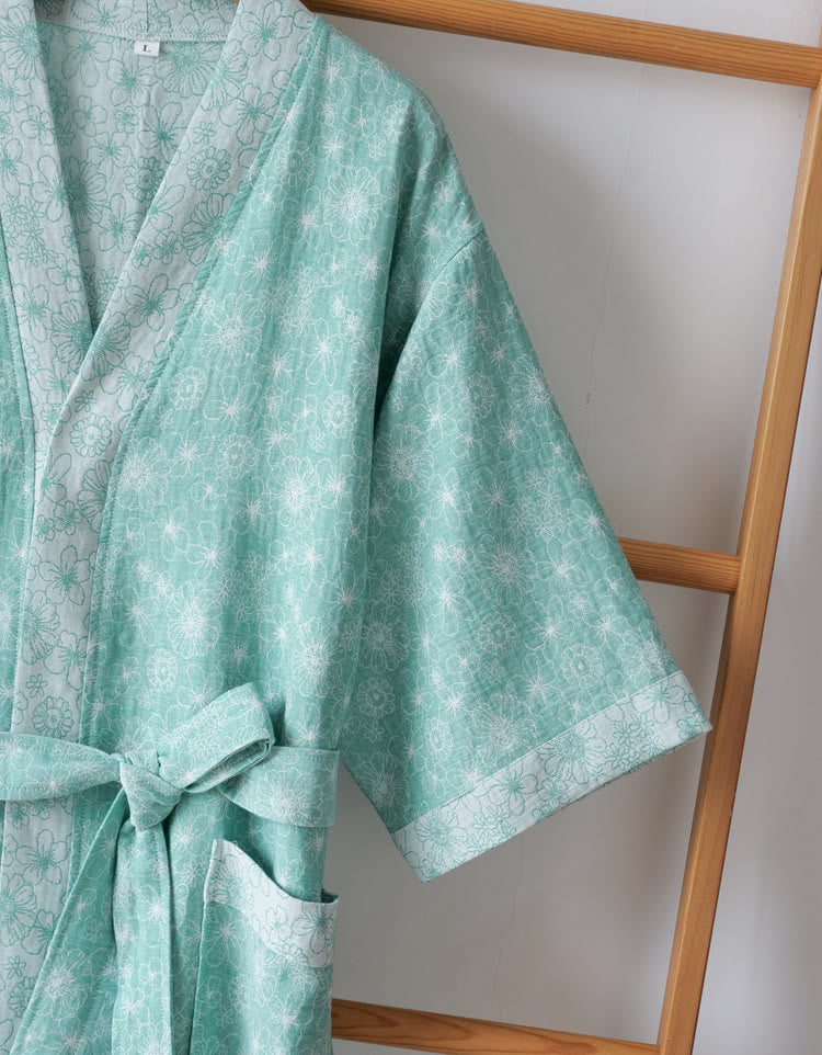 Elegant V-neck Cotton Gauze Summer Bathrobe