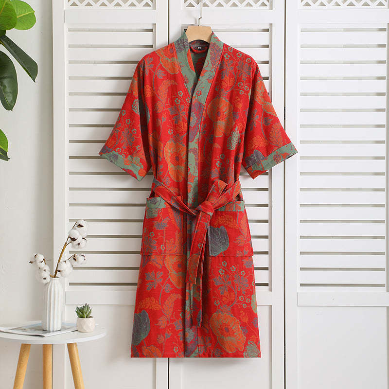 Floral Cotton Gauze Breathable Absorbent Bathrobe
