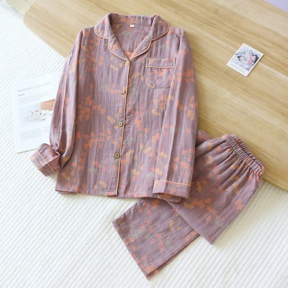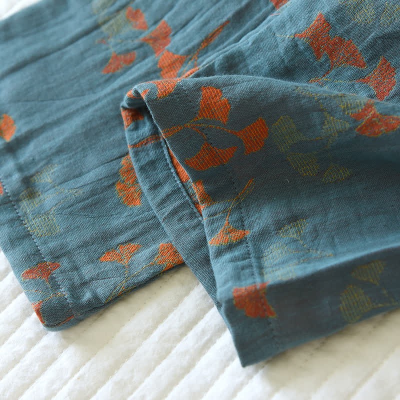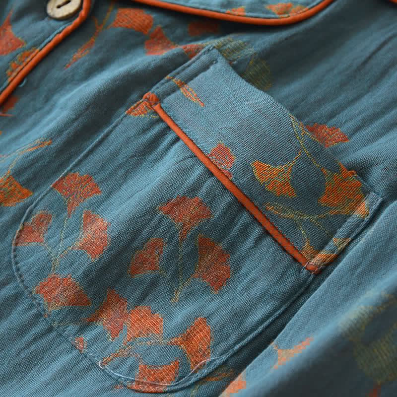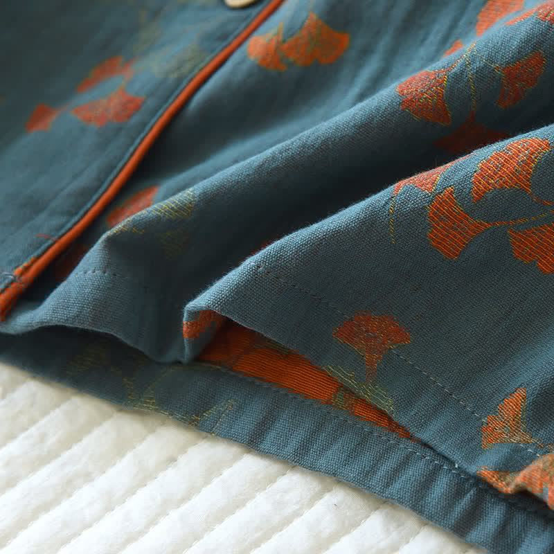 Ginkgo Lapel Neckline Cotton Loungewear Set