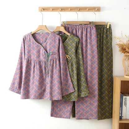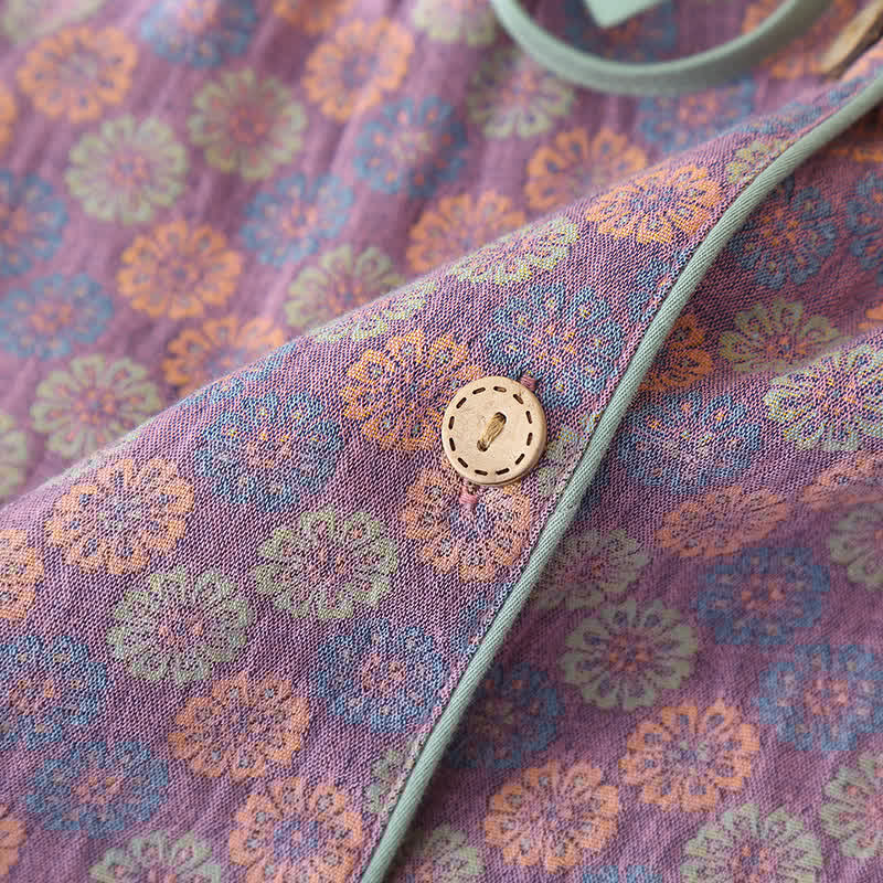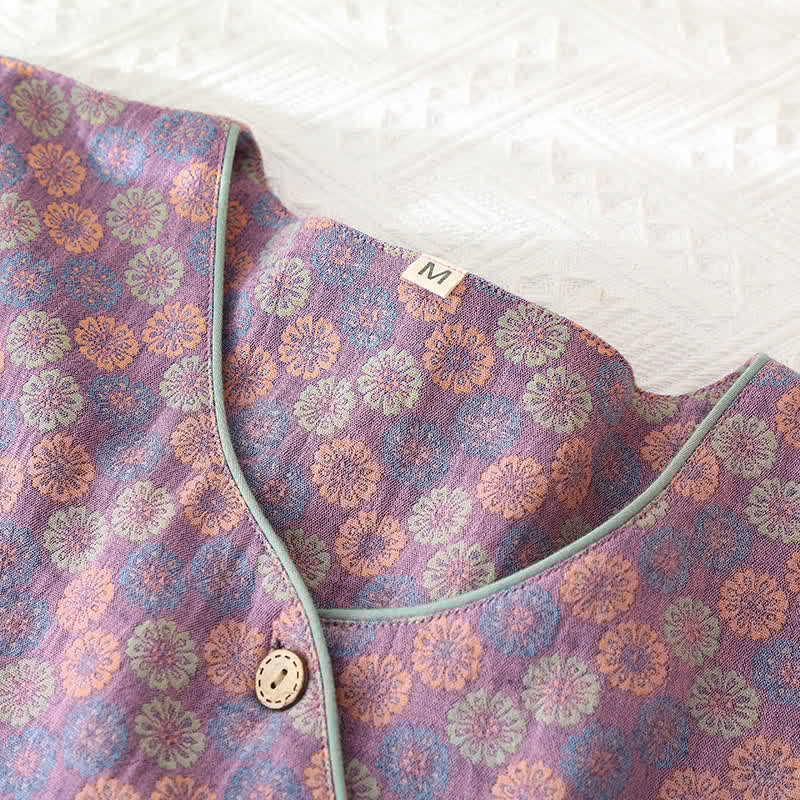 Jacquard Floral Round Neck Loungewear Set