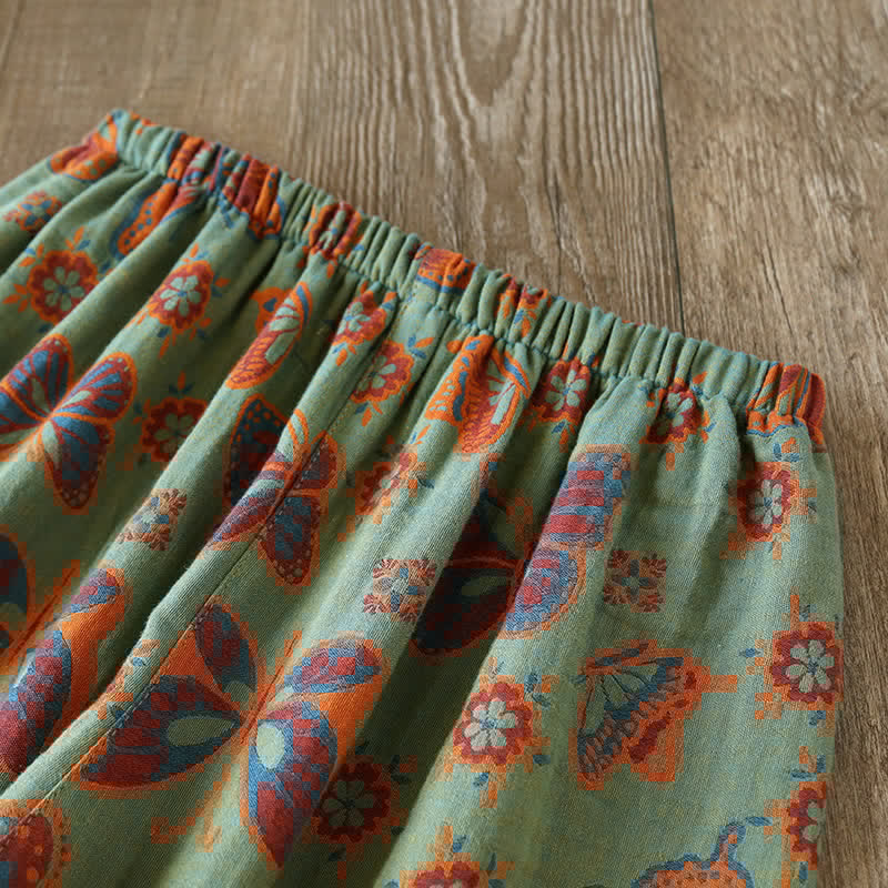 Vintage Butterfly Print Cotton Loungewear Set