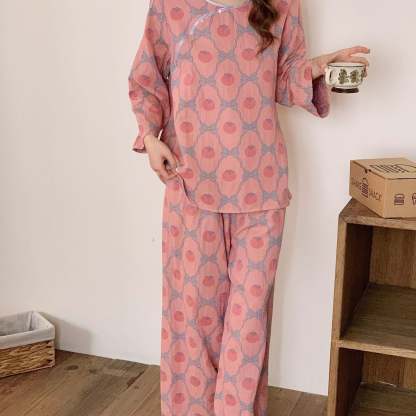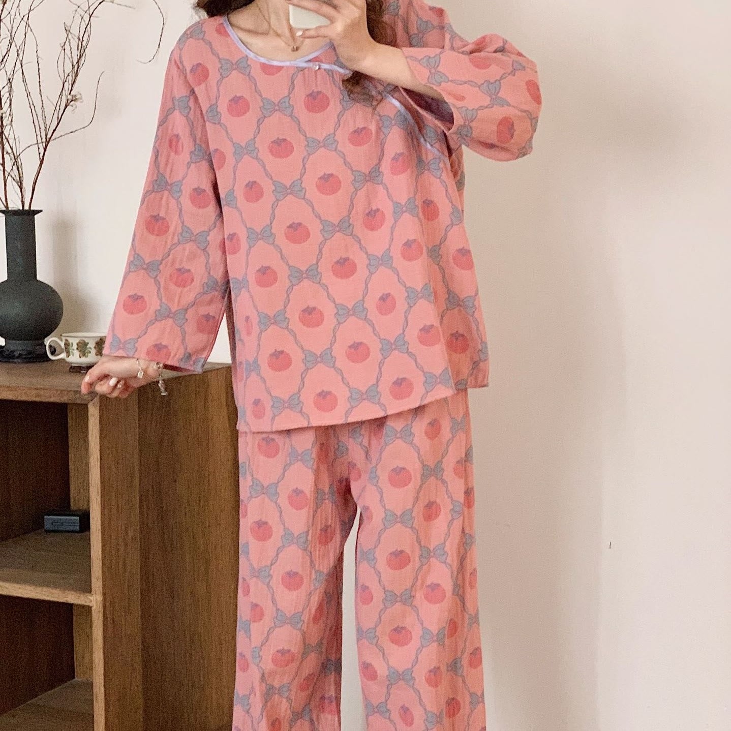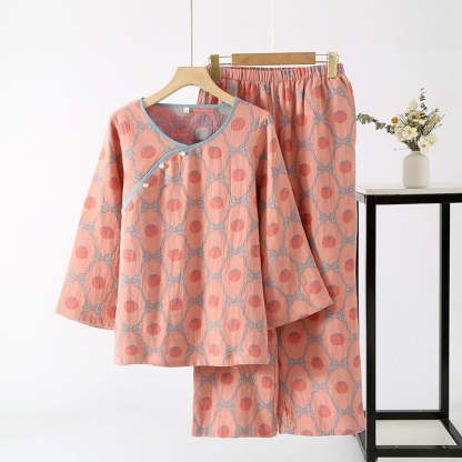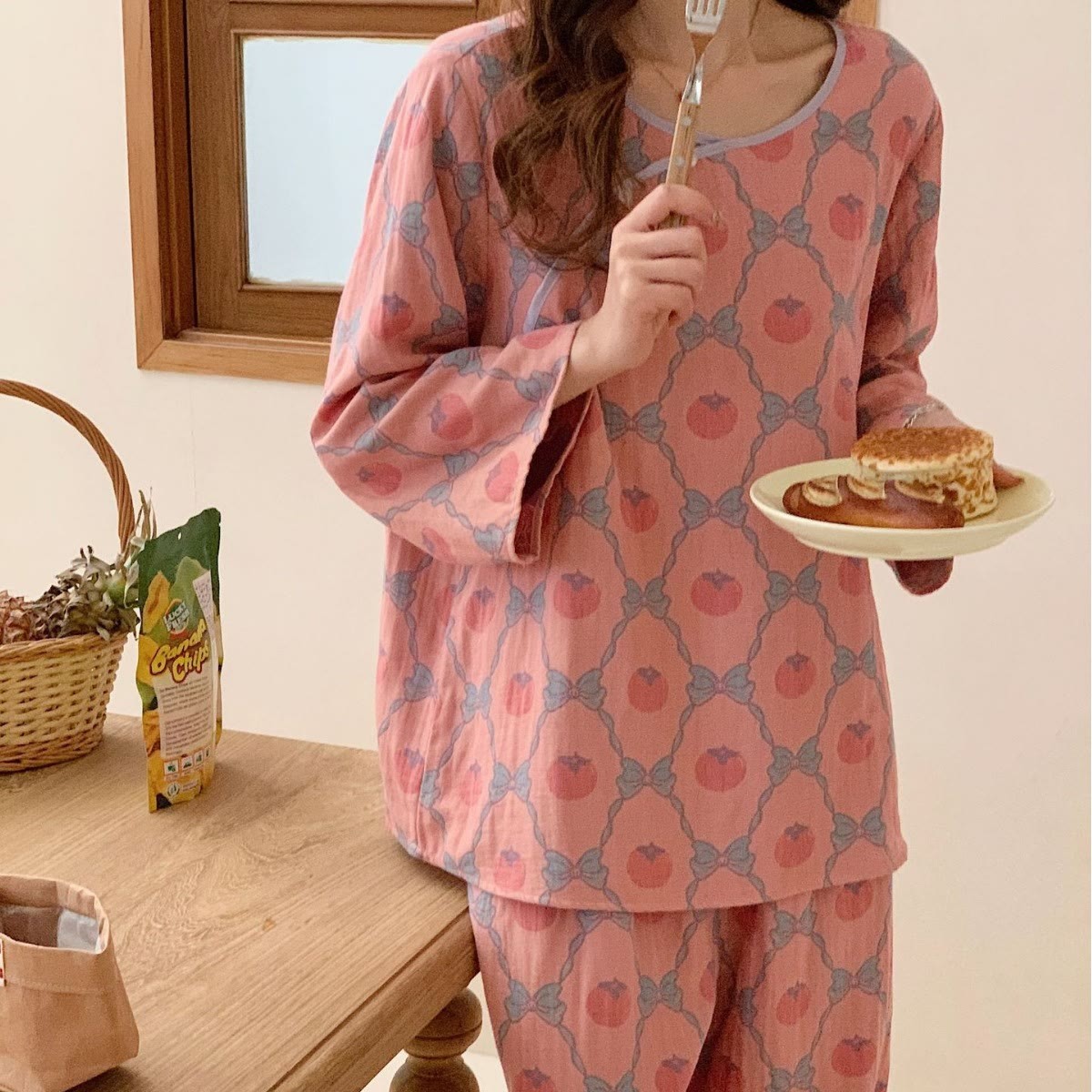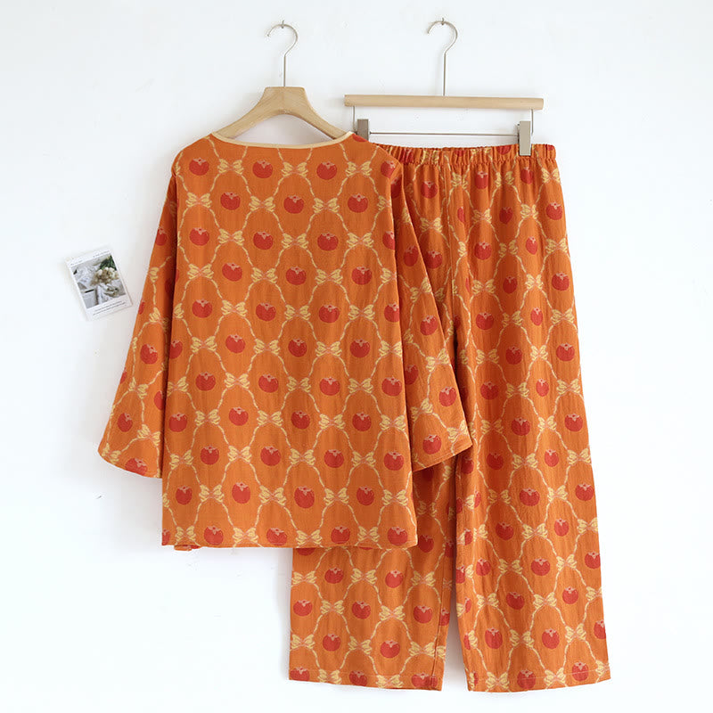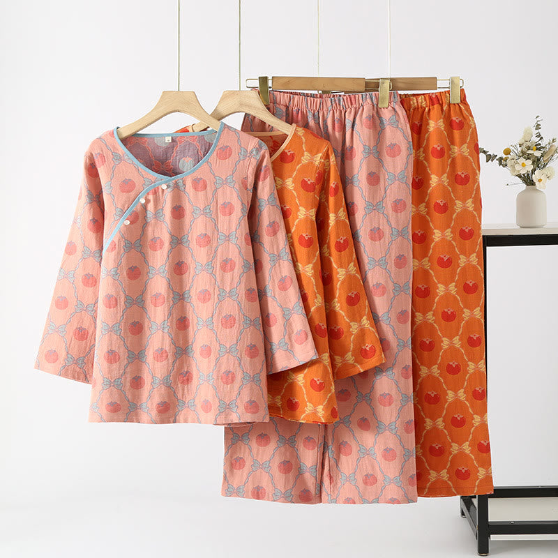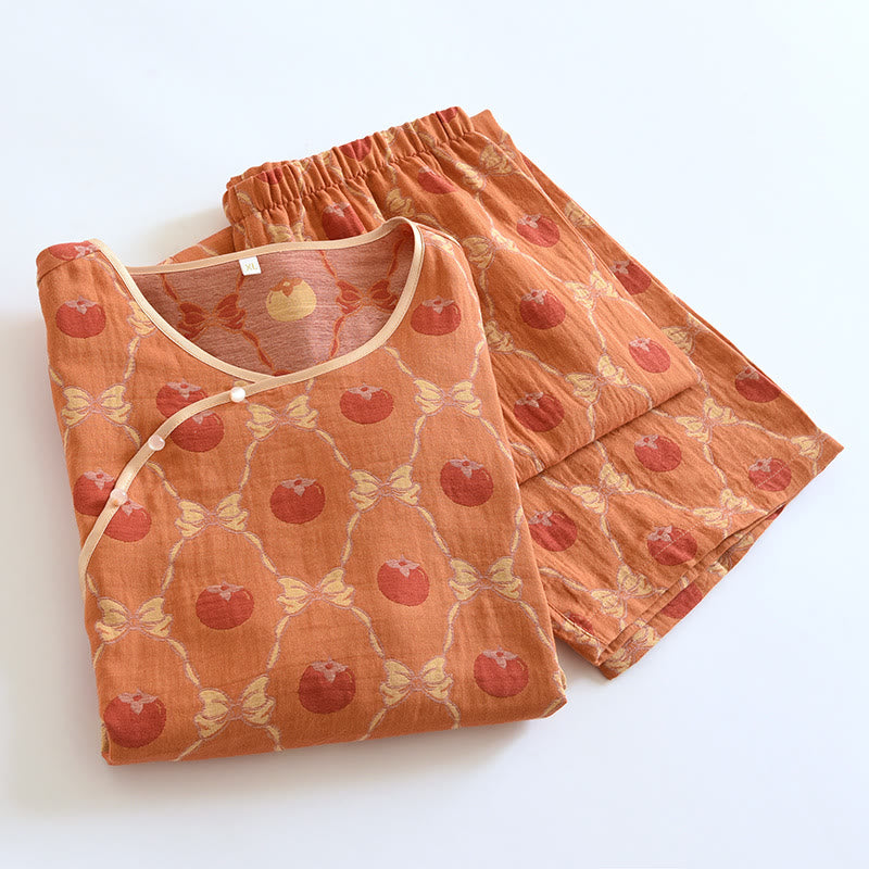 Yarn-dyed Jacquard Persimmon Cotton Pajama Set